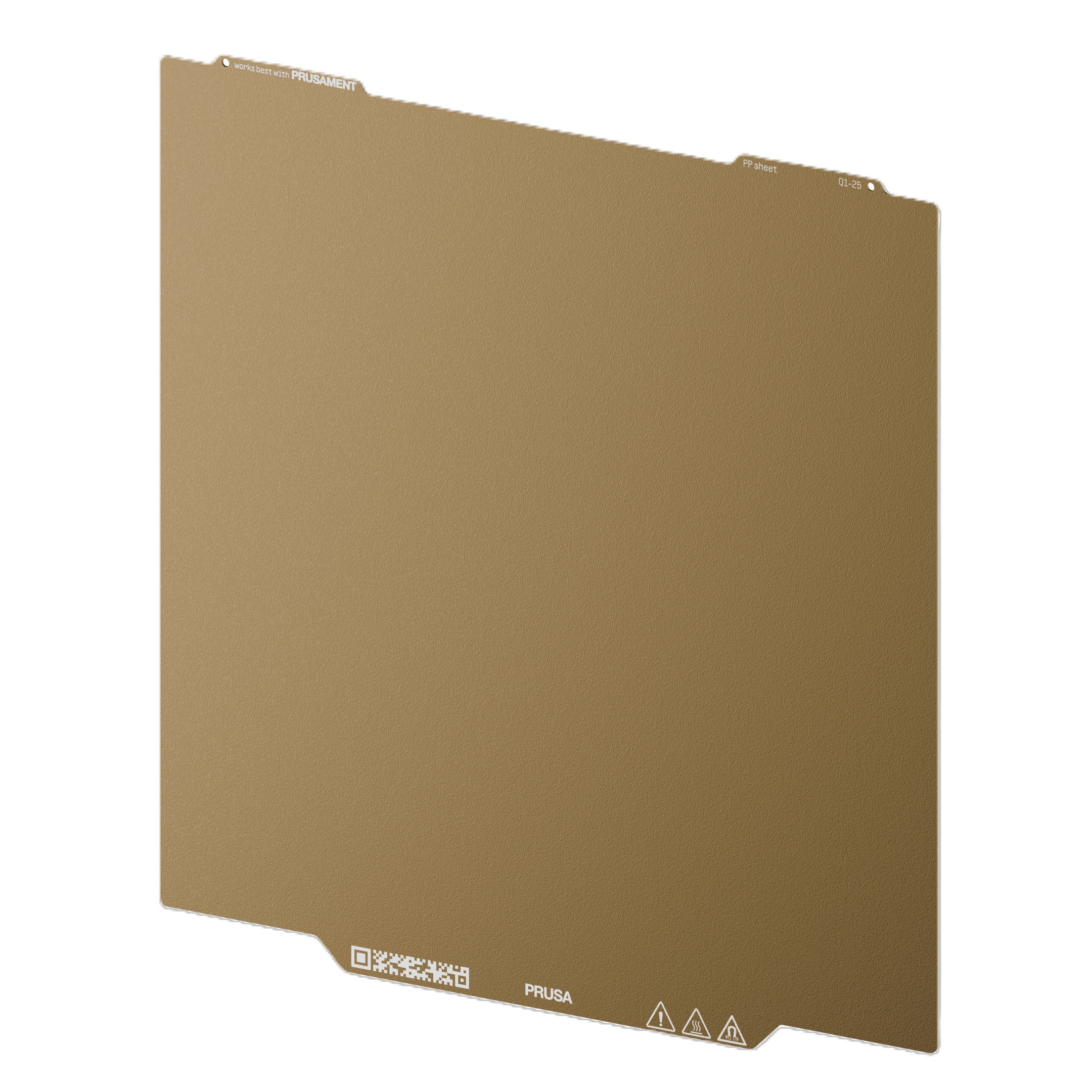 Prusa Core ONE L PP tiskový plát Heatbed MK52 má vestavěné magnety s vysokou Curieovou teplotou. Díky těmto magnetům pružné tiskové pláty pevně drží na vyhřívané podložce. Tato tisková podložka je speciálně navržena pro tisk filamentů na bázi polypropylenu. Materiály na bázi PP mají obvykle slabou přilnavost k tiskovým podložkám se saténovým nebo zrnitým povrchem. Tento plát je vybaven speciální povrchovou vrstvou, která zvyšuje přilnavost a perfektně se hodí pro tisk z PP filamentů. (Je vhodný také pro PLA, PETG a TPU. Ostatní materiály se většinou během tisku odlepí.) UPOZORNĚNÍ: Nečistěte acetonem! Nevratně byste poškodili povrch tiskového plátu. Abyste povrch odmastili, použijte čistou vodu, maximálně s kapkou prostředku na mytí nádobí. Můžete použít i IPA. Kompatibilita: Core One L Poznámka: Záruka se nevztahuje na spotřební díly, kterými jsou například tiskové pláty (hladký, texturovaný, atd.). Jejich povrch se při tisku postupně přirozeně zeslabuje, nedojde-li k jinému poškození vinou únavy materiálu či výrobního zpracování. Záruka se nevztahuje na rýhy, škrábance, promáčknutí a další kosmetické vady. Záruka se vztahuje pouze na pláty defektní již při převzetí.