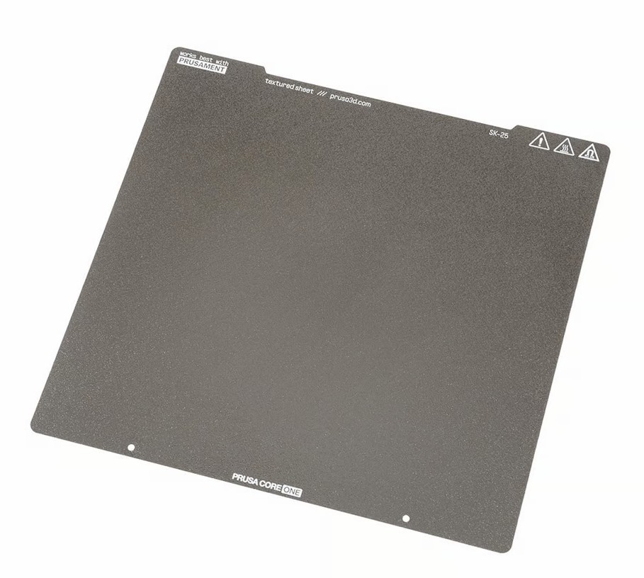 Práškový povrch je nanesený přímo na kovu, což činí tuto variantu plátu velmi odolnou proti poškození. Pokud do povrchu narazí rozpálená tryska, kov dokáže teplo rozptýlit. Prášková struktura rovněž dodává povrchu zřetelnou zrnitou texturu, která bude viditelná na vašich výtiscích. Na MK52 vyhřívaných podložkách, pro které je designovaný, drží systémem magnetů. To zajišťuje pohodlné sundavání plátu a zároveň je pevně zafixovaný na svém místě v průběhu tisku. Zrnitý povrch schová většinu mechanických poškození způsobených používanými nástroji. Poškrábané mohou být jen vršky malých hrbolků na povrchu, které pak nebudou vidět na spodní straně výtisku. Tento plát je použit i na Průšově tiskové farmě, takže jsou na něm vytištěny i plastové součásti vaší Prusa tiskárny, kde je patrný zrnitý vzhled povrchu. UPOZORNĚNÍ: Nikdy nepoužívejte na čištění zrnitého tiskového plátu aceton. Aceton naruší strukturu práškového PEI povrchu tiskového plátu a nevratně povrch zničí. Poznámka: Záruka se nevztahuje na spotřební díly, kterými jsou například tiskové pláty (hladký, texturovaný, atd.). Jejich povrch se při tisku postupně přirozeně zeslabuje, nedojde-li k jinému poškození vinou únavy materiálu či výrobního zpracování. Záruka se nevztahuje na rýhy, škrábance, promáčknutí a další kosmetické vady. Záruka se vztahuje pouze na pláty defektní již při převzetí. VLASTNOSTI Odolný proti poškrábání, těžko poškoditelný PLA výtisky s malou kontaktní plochou mohou potřebovat límec (brim) Textura se přenese do spodní strany výtisků PLA výtisky s velkým půdorysem se mohou kroutit Jednodušší Doladění osy Z Pokud vlastníte i plát s hladkým PEI povrchem, musíte při výměně upravit Doladění osy Z Není nutné čistit s přípravkem Windex před tiskem PETG Nikdy nečistěte acetonem! Není nutné použít lepidlo KORES před tiskem FLEX Po ochlazení plátu se výtisky automaticky odpojí První vrstva může být ve srovnání s hladkým plátem více zmáčknutá