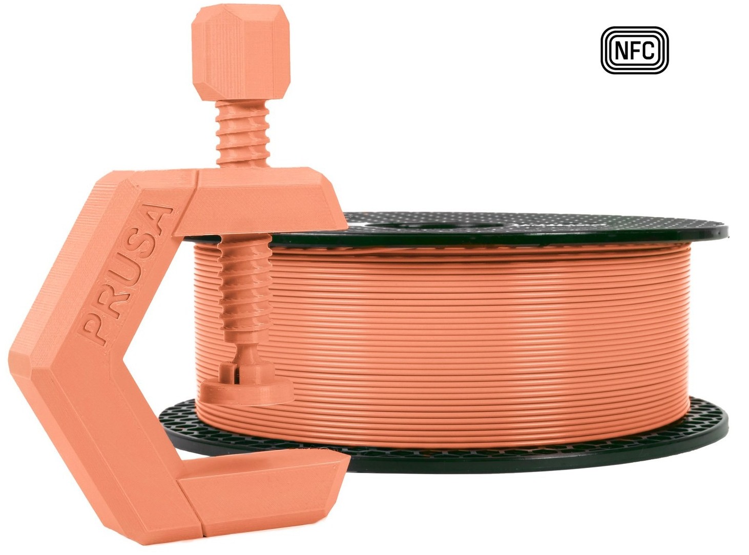 Prusament PETG Terracotta Light 1 kg (NFC) je prémiový filament vyrobený společností Prusa Research, navržený pro náročné uživatele 3D tisku, kteří hledají kombinaci mechanické odolnosti, snadného tisku a estetického vzhledu. Vlastnosti a výhody Materiál: PETG (polyethylentereftalát modifikovaný glykoly) Průměr filamentu: 1,75 mm (tolerance ±0,02 mm) Hmotnost cívky: 1 kg Barva: světlá terakota PETG kombinuje pevnost a pružnost, což z něj činí ideální materiál pro tisk mechanicky namáhaných dílů, jako jsou držáky, svorky nebo kryty. Díky nízké tepelné roztažnosti je vhodný pro tisk větších objektů bez rizika deformací. Doporučené tiskové nastavení Teplota trysky: 250 ±10 °C Teplota vyhřívané podložky: 80 ±10 °C Doporučený tiskový povrch: Texturovaný (zrnitý) nebo saténový PEI plát (Více informací o tiskových podložkách na našem blogu. Pro dosažení optimálních výsledků doporučujeme použít přednastavené profily v PrusaSliceru. Klíčové vlastnosti Vysoká teplotní odolnost: Vhodný pro aplikace vyžadující odolnost vůči vyšším teplotám. Snadný tisk: Dobrá přilnavost vrstev a minimální smrštění. Mechanická odolnost: Vysoká pevnost a houževnatost. Estetický vzhled: Hladký povrch se světle terakotovou barvou. Nové cívky se standardem OpenPrintTag Od října 2025 jsou Prusamenty navíjeny na nově navržených cívkách, které přinášejí řadu praktických vylepšení pro pohodlnější práci s filamentem. Cívka má jednoduchý uzamykací mechanismus, díky němuž ji můžete snadno rozebrat a opět sestavit – doplňování filamentu je tak ještě rychlejší a bez komplikací. Konstrukce zároveň zajišťuje stabilitu při sušení, a to i při vyšších teplotách. Nový užší profil navíc zvyšuje kompatibilitu s různými multimateriálovými systémy. Součástí každé nové cívky je také přepisovatelný NFC čip využívající standard OpenPrintTag. Ten je navržen tak, aby byl plně otevřený, snadno rozšiřitelný a fungoval napříč různými značkami i zařízeními. Hlavním přínosem je jeho offline provoz – všechna důležitá data jsou uložená přímo v tagu, takže tiskárna cívku rozpozná okamžitě, bez nutnosti připojení k internetu nebo k uzavřenému ekosystému. Tag obsahuje klíčové informace o filamentu a lze jej načíst i prostřednictvím mobilní aplikace Prusa.