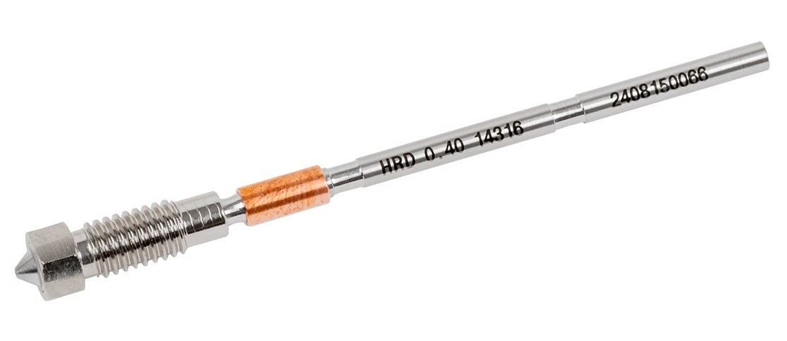 Tvrzená tryska Prusa 0,4 mm – poniklovaná pro maximální výdrž a kvalitu tisku Tato speciálně tvrzená poniklovaná tryska Prusa (0,4 mm) je ideální volbou pro uživatele, kteří chtějí tisknout i z abrazivních filamentů a zároveň zachovat vysokou kvalitu výtisků. Niklový povrch výrazně zlepšuje přenos tepla, přispívá k rovnoměrné extruzi a díky své tvrdosti zajišťuje dlouhou životnost i při náročném provozu. Výhody poniklované tvrzené trysky Vysoce odolná proti opotřebení – vhodná pro filamenty s brusnými částicemi (metal, glow-in-the-dark, karbonová vlákna…) Do vysokých teplot až 300 °C – vhodná i pro technické materiály Výborný přenos tepla díky niklovanému povrchu Stabilní extruze a čisté detaily i při dlouhodobém tisku Standardní průměr 0,4 mm pro univerzální použití Balení obsahuje Prusa Hardened Nozzle – poniklovaná (1 ks) Kompatibilita Original Prusa MK4 / MK4S Prusa XL Prusa MK3.9 / MK3.9S Prusa CORE One / CORE One+