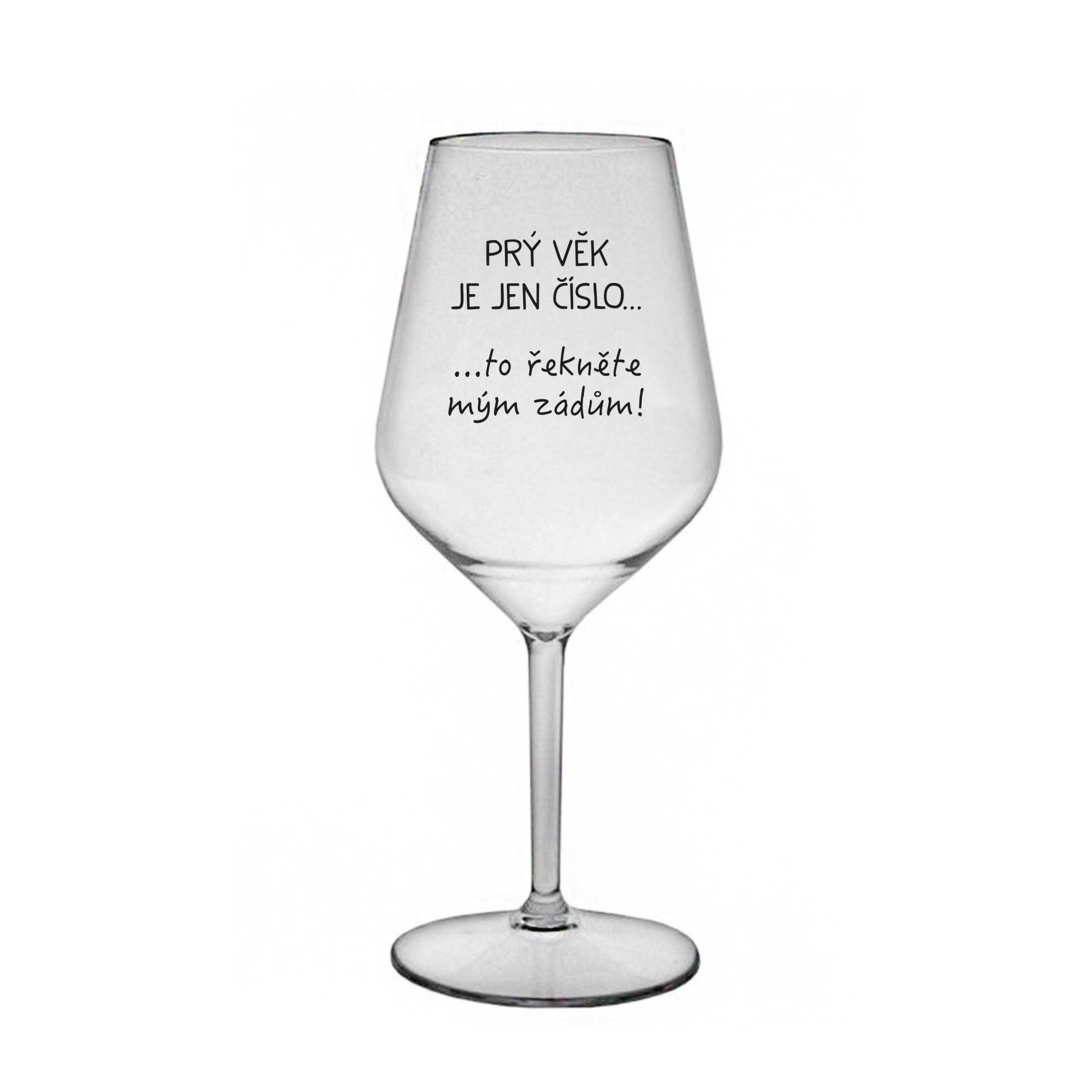 Nerozbitná čirá vinná sklenice s motivem PRÝ VĚK JE JEN ČÍSLO je skvělá na zahradu, pláž, výlet, piknik a parádu udělá i při kempování. Jelikož je vyrobená z kvalitního polykarbonátu je de facto nerozbitná. Je to luxusní kousek, s nímž si víno můžete vychutnat prostě kdekoliv. Mají ergonomický tvar, který příjemně padne do ruky a protože je lehká, usnadňuje to její přenášení. Je snadno skladovatelná a lehce se čistí. Díky svému designu si s ní můžete vychutnat doopravdy kdekoliv bezproblémové pití výborného vína. Materiál PP. Vyrobené s láskou v ČR