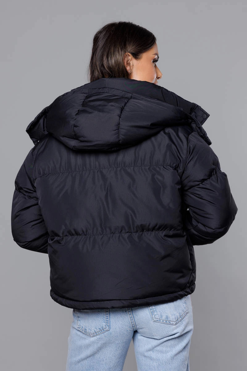 Věnujte prosím pozornost při výběru velikosti dle velikostní tabulky uvedené níže. Velikosti neodpovídají běžně nošené konfekci. Bunda se stojáčkem a kapucí Bunda je zateplená vrstvou syntetické péřové výplně, má dvě kapsy bez zapínání a zapíná se zipem a panelem s patentkami. Model má kapuci, kterou není možné odepnout. Na koncích rukávů jsou skryté stahovací lemy. Na spodním okraji modelu jsou ve přední části stahující gumy. Bunda má délku k bokům. Složení: 100 % polyester.