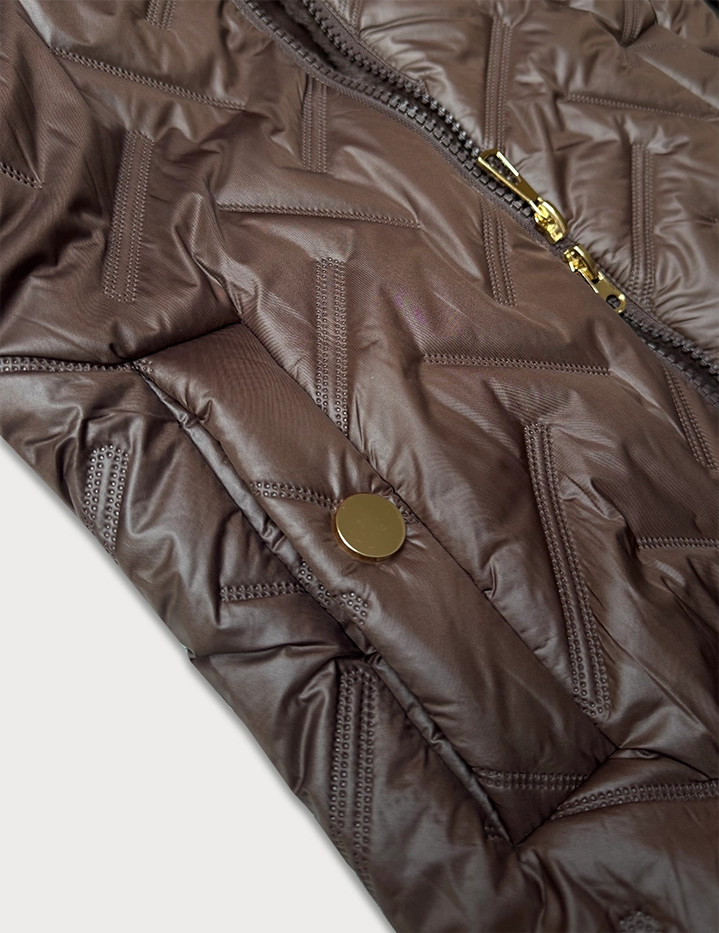 Věnujte prosím pozornost při výběru velikosti dle velikostní tabulky uvedené níže. Velikosti neodpovídají běžně nošené konfekci. Prošívaná bunda s asymetrickou spodní částí Bunda je lehce zateplená syntetickou péřovou výplní, uvnitř má kožešinu, má dvě kapsy se zapínáním na patentky a zapíná se dvousměrným zipem. Model má kapuci, kterou není možné odepnout. Rukávy jsou zateplené syntetickou péřovou výplní. Kovové prvky mají zlatou barvu. Přední část bundy má délku k bokům a zadní část má délku pod boky. Složení: 100 % polyester.