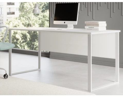 Obdélný psací stůl v moderním stylu o velikosti 170x73 cm je vyroben v bílé barvě a má širokou podnož z bílého kovu, která mu dodává dobrou stabilitu.