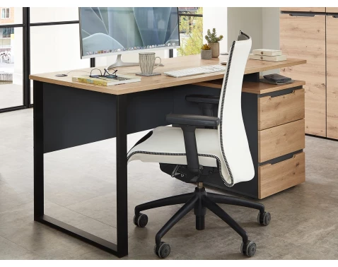 Psací stůl o šířce 120 cm z programu Memphis – moderní nábytek v kontrastní kombinaci matný grafit s útulným dřevodekorem dub artisan.