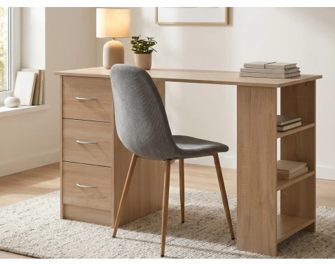 Psací stůl o šířce 115 cm najde své místo téměř v každé místnosti. Stůl v dekoru dub sonoma obsahuje 3 úložné šuplíky a regál se 3 otevřenými přihrádkami.