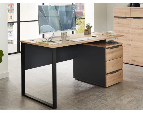 Psací stůl se zásuvkami z programu Memphis – moderní nábytek v kontrastní kombinaci matný grafit s útulným dřevodekorem dub artisan.