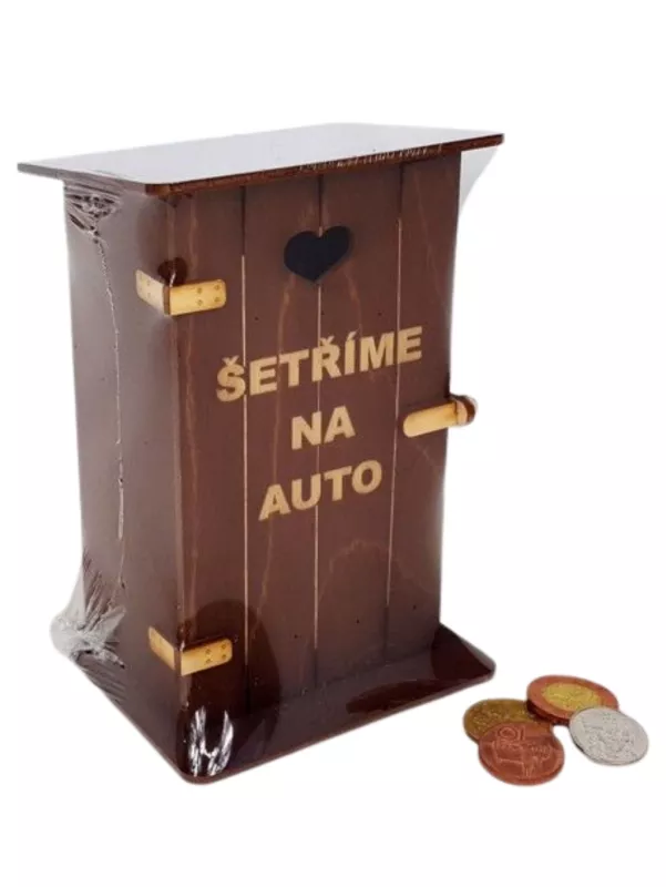 🚗 Nové auto, oprava nebo jen palivo? Každá koruna se hodí! Tato dřevěná pokladnička ve tvaru kadibudky je ideálním způsobem, jak si postupně naspořit na vysněné auto nebo třeba jen na nezbytné výdaje spojené s jeho provozem.