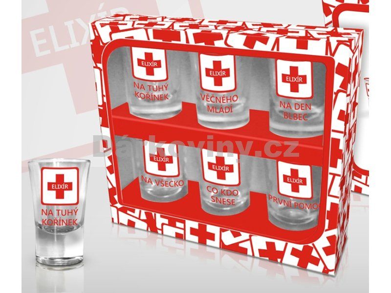 Sada panáků bota - 6ks Skleněný panák S/6 bota - Ještě slyším, ještě vidím....