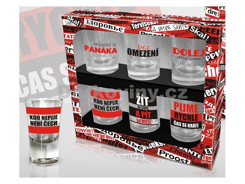 Sada panáků bota - 6ks Skleněný panák S/6 bota - Ještě slyším, ještě vidím....
