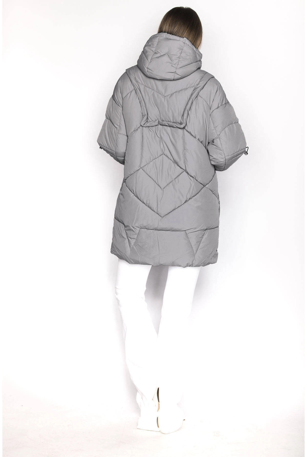 Domů Oblečení a móda Dámské oblečení Dámské bundy a kabáty Šedá dámská péřová bunda s ozdobnými páskami (AG2-J85) odstíny šedé XL (42)