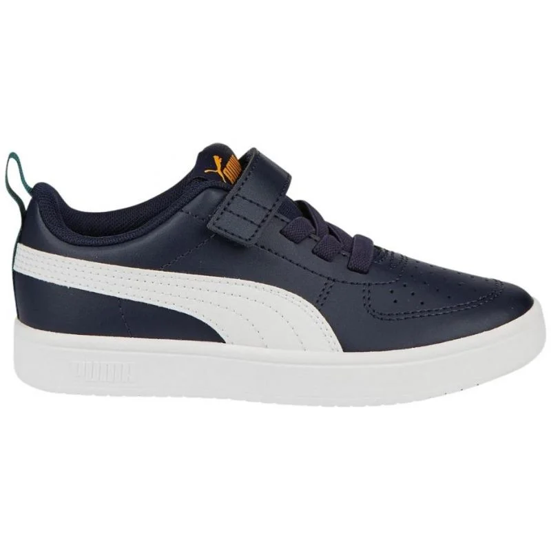 Dětské boty Puma Rickie AC PS navy blue and white 385836 07 Vlastnosti: Dětské boty Puma se budou dobře hodit na každodenní nošení. Konstrukce z ekologické kůže. Perforace na přední části. Měkká textilní podšívka a pěnová stélka. Elastické pásky připomínající tkaničky. Přídavný pásek na suchý zip. Gumová podrážka s neznačkovacím systémem, který zabraňuje vzniku stop na podlaze.