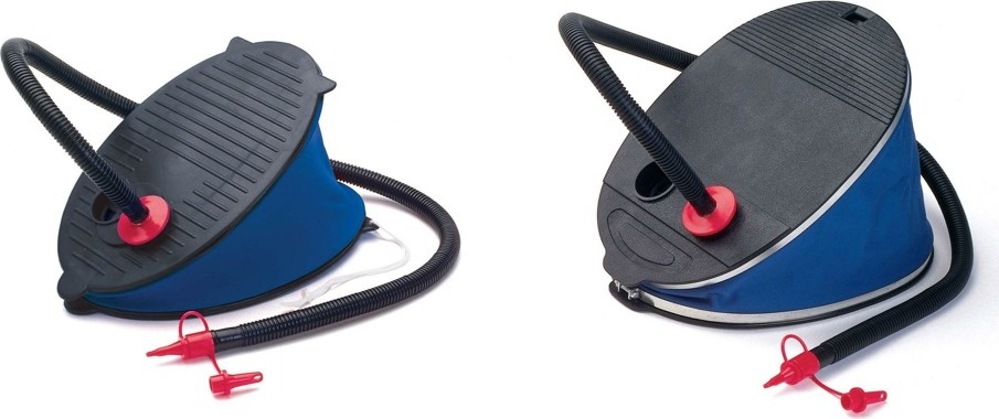 Nožní pumpa Velikost 30 cm. Dvojitý objem, dvojitý záběr. Vysoko-objemová pumpa umožňuje nafukování i vyfukování. Pumpuje vzduch při tahu vzhůru i při pohybu dolů. Flexibilní hadička se 3 násadami, je použitelná pro většinu ventilků. Z lehkého pevného plastu.