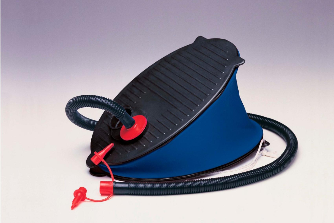 Typ pumpy: šlapací • Velikost 28 cm. • Dvojitý objem, dvojitý záběr. Vysoko-objemová pumpa umožňuje nafukování i vyfukování. • Pumpuje vzduch při tahu vzhůru i při pohybu dolů. Flexibilní hadička se 3 násadami, je použitelná pro většinu ventilků. Z lehkého pevného plastu.