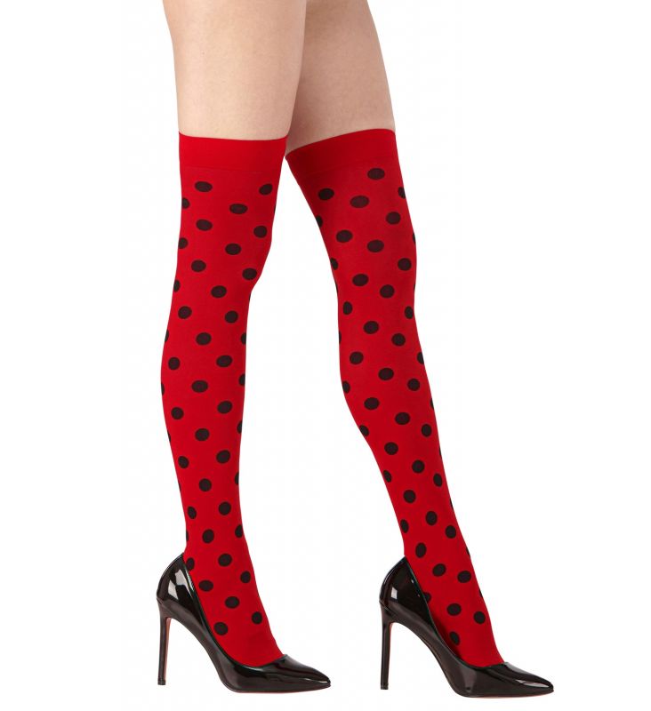 Nadkolenky beruška, červené s černými puntíky. Tloušťka vlákna: 70 DEN Velikost: XL Materiál: 100% nylon