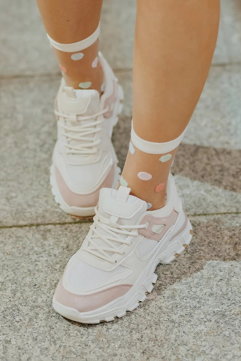 Přidejte svému outfitu nádech zábavy a lehkosti s průhlednými ponožkami Punta, které jsou vyrobeny ze 100% polyamidu. Jejich originální design s barevnými trojrozměrnými tečkami dodá každému outfitu osobitý charakter. Skvěle se hodí k teniskámós, mokasínámós nebo dokonce sandálůmós – tyto ponožky jsou nezbytnou součástí výbavy módních fanoušků, kteří se nebojí experimentovat s doplňky..