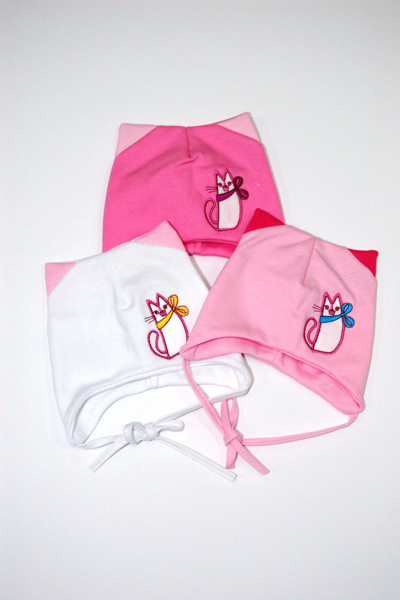 Dívčí klobouk s malými oušky a barevnou aplikací.