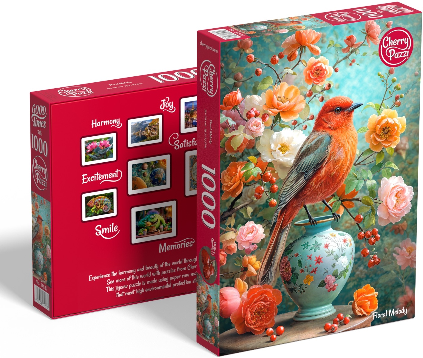 Puzzle 1000 dílků Cherry Pazzi – Květinová melodie (Floral Melody) Když si večer sednete ke stolu a vysypete z krabičky tisíc dílků, svět kolem vás na chvíli ztichne. Tohle puzzle vás vtáhne do obrazu, kde na zdobené porcelánové váze sedí ptáček s oranžovým peřím a kolem něj rozkvétají růže, pivoňky a drobné bobule. Každý dílek je malým kouskem té melodie, kterou květiny a příroda společně hrají. Proč si vybrat právě toto puzzle Motiv Květinová melodie patří k těm, u kterých se rádi zdržíte. Bohatá paleta barev – od teplých oranžových a růžových tónů až po uklidňující tyrkysové pozadí – nabízí dostatek vodítek i pro zkušené skládače. Zároveň vás ale nenechá v klidu, protože jemné přechody mezi okvětními lístky a detaily ptačího peří vyžadují soustředění a trpělivost. Kvalita, kterou poznáte hned po otevření krabičky Cherry Pazzi si zakládá na precizním zpracování. Dílky jsou vyřezány z pevného kartonu o tloušťce 2,2 mm, takže je příjemné brát je do ruky a nehrozí, že se při skládání ohnou nebo poškodí. Saténový povrch puzzle i krabičky dodává celému produktu elegantní vzhled a zároveň zajišťuje, že barvy zůstávají syté a věrné originálu. Co ocení každý, kdo už má za sebou desítky složených obrazů: dílky mají rozmanité tvary. Žádné dva kusy nejsou zaměnitelné, každý zapadne přesně tam, kam patří. Odpadá tak frustrující hledání, jestli dílek sedí, nebo jen vypadá, že by mohl sedět. Technické parametry Počet dílků: 1000 Rozměr složeného puzzle: 50 × 70 cm Tloušťka dílků: 2,2 mm Rozměr krabičky: 35 × 25 × 5 cm Povrch: saténový (puzzle i krabička) Výroba: EU Pro koho je puzzle určeno Tisícovka dílků představuje výzvu, která si žádá čas. Počítejte s několika večery plnými soustředěného skládání, kdy postupně sledujete, jak se z hromádky barevných kousků rodí ucelený obraz. Puzzle je ideální pro dospělé, kteří hledají způsob, jak vypnout od každodenního shonu a zároveň procvičit logické myšlení. Hodí se ale i jako společná aktivita – u většího stolu se pohodlně vejdou dva nebo tři skládači a můžete si rozdělit práci podle barevných oblastí. Květiny, ptáček, pozadí, váza – každý si najde svůj kousek obrazu. Tip na závěr Hotové puzzle o rozměrech 50 × 70 cm si přímo říká o zarámování. Květinová melodie krásně oživí stěnu v obývacím pokoji, ložnici nebo pracovně. A pokaždé, když na obraz pohlédnete, připomenete si ty příjemné hodiny strávené skládáním. Puzzle Cherry Pazzi v elegantní krabičce se saténovým povrchem je také promyšleným dárkem pro každého, kdo má rád klidnou zábavu s krásným výsledkem. Darujete nejen obraz, ale i zážitek. Zakupte produkt Puzzle Cherry Pazzi 1000 dílků - Květinová melodie (Floral Melody) z kategorie Hry, hračky, párty, karneval | Puzzle | Puzzle 1000 dílků od výrobce Cherry Pazzi za cenu 235 Kč.