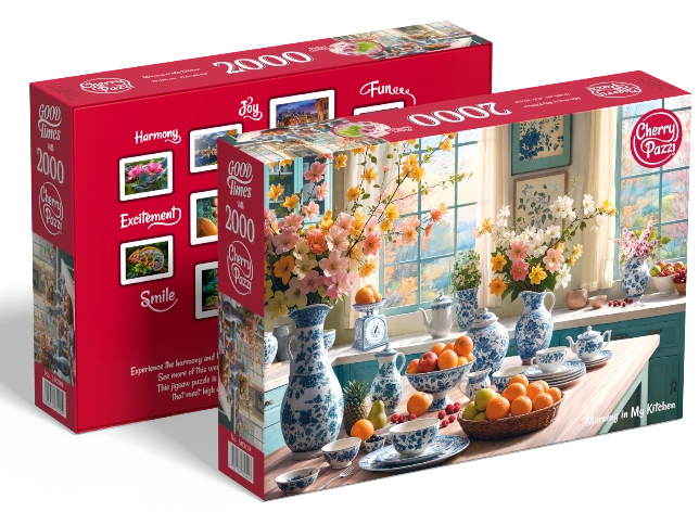 Puzzle Cherry Pazzi 2000 dílků - Morning in My Kitchen Užijte si dlouhé hodiny relaxace a soustředění s nádherným puzzle Morning in My Kitchen od značky Cherry Pazzi. Toto velkoformátové puzzle s 2000 dílky je ideální volbou pro všechny milovníky skládaček, kteří hledají skutečnou výzvu a zároveň krásný výsledek. Proč si vybrat právě toto puzzle? Nádherný motiv plný detailů Ponořte se do kouzelné atmosféry ranní kuchyně zalité slunečním světlem. Motiv je plný barevných květin, porcelánu s modrým vzorem, čerstvého ovoce a útulných detailů, které vytvoří harmonický celek. Po složení získáte skutečné umělecké dílo, které si zaslouží zarámování a ozdobí každý interiér. Špičková kvalita materiálu Puzzle Cherry Pazzi jsou vyrobeny z pevného, kvalitního materiálu s tloušťkou 2,2 mm, což zajišťuje dlouhou životnost a odolnost dílků. Povrch puzzle i krabičky má krásný saténový povrch, který je příjemný na dotek a dodává produktu prémiový vzhled. Precizní zpracování Každý dílek má jedinečný tvar a přesně zapadá pouze na své místo – díky tomu je skládání přesné a pohodlné. Dílky do sebe perfektně zapadají a drží pohromadě, takže se nemusíte obávat nepřesností. Velkoformátový výsledek Rozměr složeného puzzle je působivých 70 x 100 cm, což z něj činí skutečně velkolepé dílo vhodné k zarámování a vystavení. Co vám puzzle přinese? Relaxaci a odpočinek – ideální způsob, jak se odpojit od každodenního stresu Trénink mozku – rozvíjí soustředění, trpělivost a logické myšlení Dlouhé hodiny zábavy – 2000 dílků zaručuje pohlcující zábavu na mnoho večerů Krásnou dekoraci – hotový obraz je dokonalý k zarámování Technické parametry Počet dílků: 2000 Rozměr složeného puzzle: 70 x 100 cm Tloušťka dílků: 2,2 mm Rozměr krabičky: 35 x 25 x 7 cm Povrch: saténový Výroba: EU Pro koho je toto puzzle určeno? Puzzle Cherry Pazzi s 2000 dílky je vhodné pro zkušené stavitele a všechny, kdo milují výzvu a mají rádi detailní práci. Je to skvělý dárek pro milovníky puzzle, příznivce krásných motivů nebo pro každého, kdo hledá smysluplnou relaxaci. Vyrobeno v Evropské unii – záruka kvality a spolehlivosti. Zakupte produkt Puzzle Cherry Pazzi 2000 dílků - Morning in My Kitchen z kategorie Hry, hračky, párty, karneval | Puzzle | Puzzle 2000 dílků od výrobce Cherry Pazzi za cenu 385 Kč.