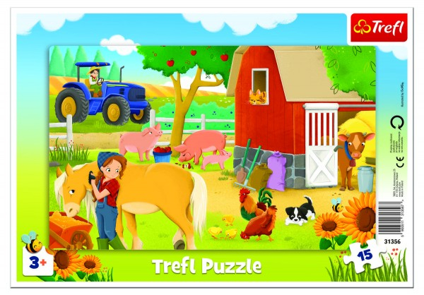 Poskládejte si puzzle s motivem farmy, které se skládá přímo na přiloženou podložku s rámečkem. Puzzle obsahuje 15 dílků. Rozměry podložky: 33 x 23 cm Vhodné pro děti od 3 let