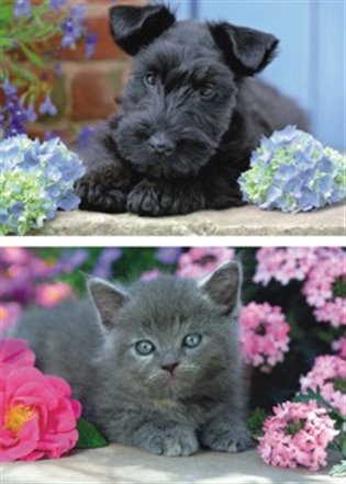 Puzzle Pejsek s kočičkou na terase 2x48 dílků