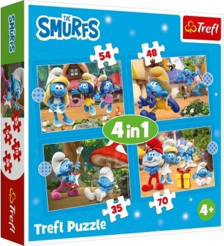 Puzzle Šmoulí vesnička 4v1 (35, 48, 54, 70 dílků)