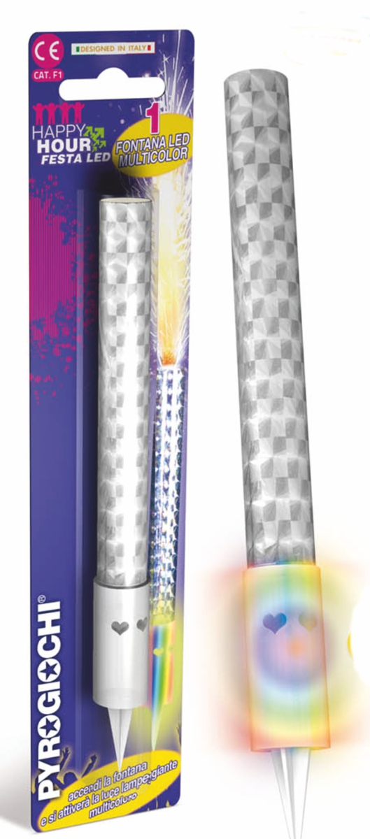 Dortová fontána a LED světlo Rozměr fontány : výška 15 cm + 2,5 cm zápich Doba hoření : 60 sec. Při zapálení dortové fontány se rozbliká LED světlo. Doba hoření je 50 sekund. Fontánu stačí zapíchnout do dortu špičkou a horní okraj zapálit. Fontána vytvoří efekt zářících a chrlících jisker. Fontány vytvářejí jedinečnou atmosféru. Různé možnosti využití a designu dělají z tohoto produktu skvělý doplněk každé oslavy. Na dětskou oslavu můžete využít obyčejné fontány s disney motivem. Kdybyste chtěli svoje děti potěšit ještě více, můžete k těmto fontánám ještě přikoupit hrající fontánu se svíčkami.