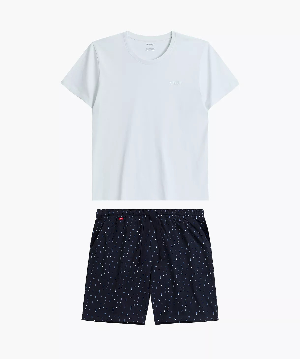 Pánské letní pyžamo - měkké bavlněné úplety - tričko s krátkým rukávem - kulatý výstřih - krátké šortky volného střihu s geometrickými vzory - v pase úpletová guma a pásek na zavázání pro úpravu pasu - pohodlné kapsy na bocích Složení: 100% bavlna