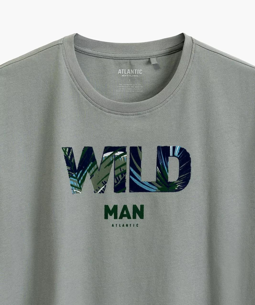 Pánská pyžama - měkký, příjemný úplet s "broskvovým efektem" - halenka s dlouhými rukávy - ozdobný nápis WILD na přední straně - dlouhé pevné kalhoty - v pase šňůrka na stažení pro nastavení Složení: šedomodrá barva: tričko 80% bavlna, 20% viskóza; kalhoty 100% bavlna; zelená/khaki barva: 100% bavlna