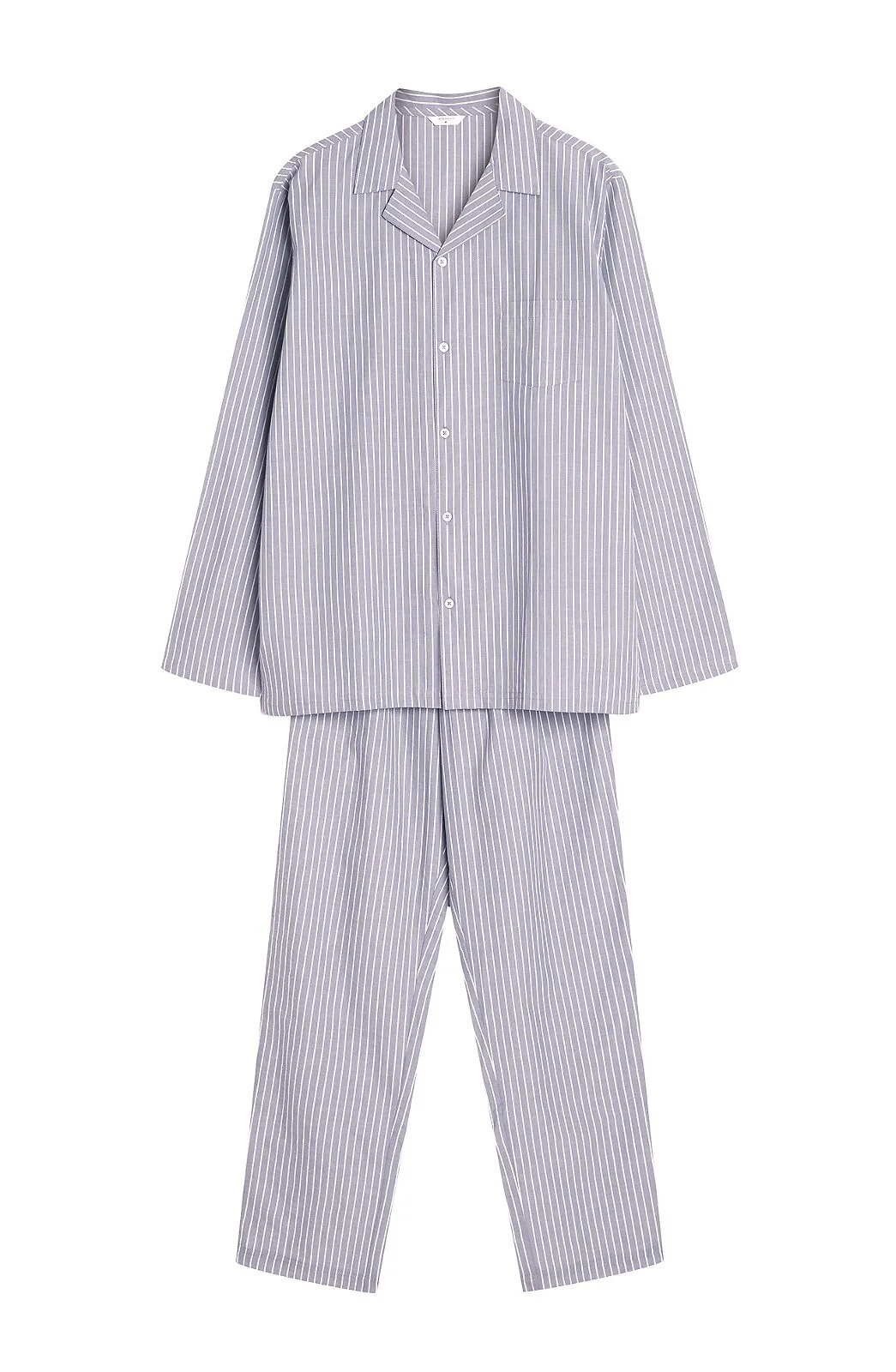 Pánské pyžamo na zip - tenká pruhovaná bavlněná tkanina - halenka s dlouhými rukávy - s límečkem, zapínání vpředu na knoflíky - našitá náprsní kapsa - dlouhé kalhoty s postranními rozparky - baleno v krabici Složení: 100% bavlna
