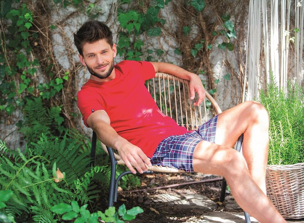Pánské bavlněné pyžamo - tričko s krátkým rukávem - půlkruhový výstřih - kostkované krátké kalhoty - elastický pás lemovaný bavlnou - pohodlné kapsy Složení: 100% bavlna