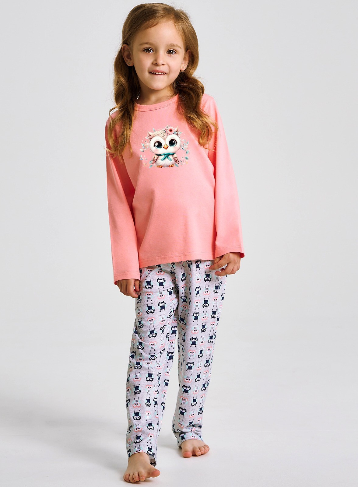 Dívčí pyžama - vysoce kvalitní bavlna - přední strana zdobená barevným potiskem - tričko s dlouhým rukávem - dlouhé vzorované kalhoty - pohodlný elastický pás Složení: 100% bavlna