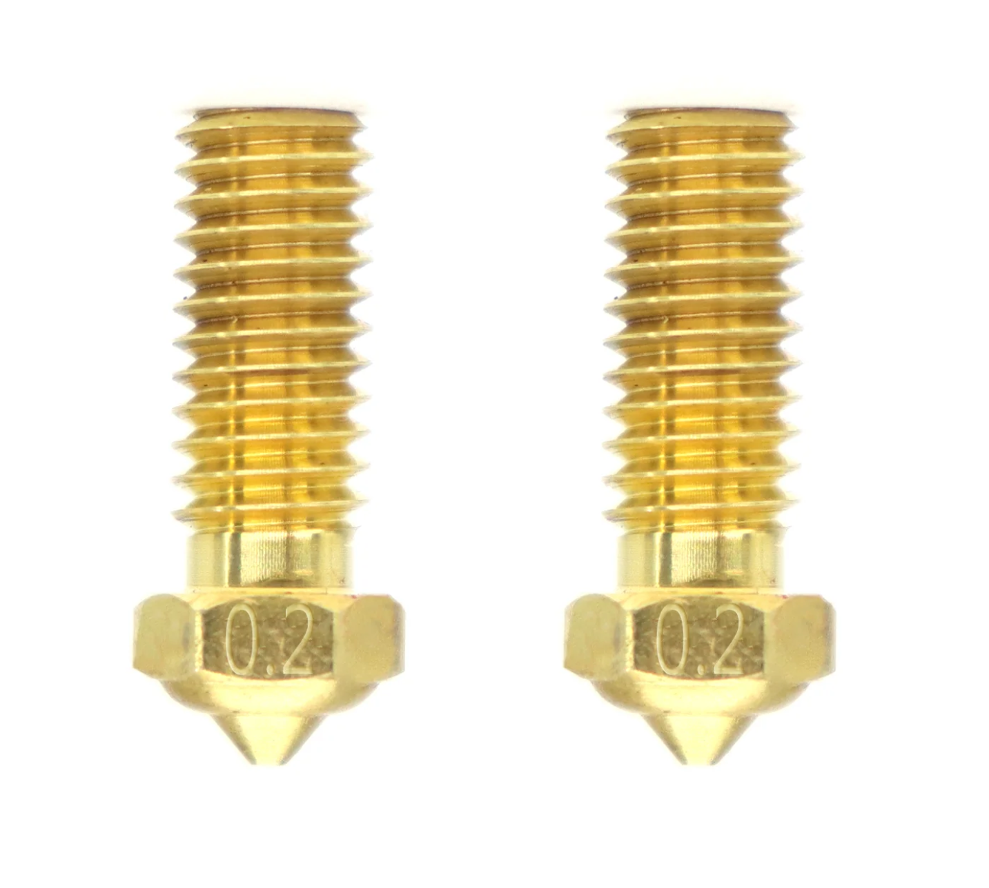 Kvalitní mosazná tryska 0,2 mm určená k tisku 1,75 mm širokých strun. Trysky pro 3D tiskárny značky QIDI jsou podobné standardním tryskám Volcano, ale jsou o 2 mm kratší v závitové části. Po našroubování trysky doporučujeme nahřát hotend na pracovní teplotu (přibližně 250 °C) a trysku za tepla dotáhnout, aby se tryska dobře těsnila. Mosazné trysky mají výbornou tepelnou vodivost a dobré mechanické vlastnosti. Jsou vhodné pro většinu typů 3D tiskových materiálů (ABS, PLA, ASA, PET, PC, Nylon, ...), kromě materiálů abrazivních (s příměsí kovových vláken, flitrů, uhlíkových vláken, ESD a samozhášivých materiálů apod.). Tepelná vodivost: 105 W·m−1·K−1Koeficient roztažnosti: 18.0 μm/m·℃ Více o tom, jak vybrat trysku a proč je pro výsledný výtisk důležitá najdete zde.