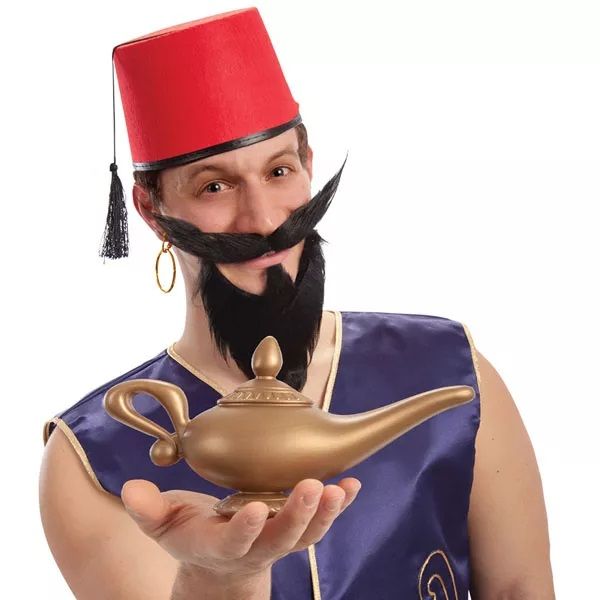 Staňte se součástí kouzelného příběhu s touto plastovou zlatou Aladinovou lampou, která se skvěle hodí jako doplněk ke kostýmu Aladina, kouzelného džina nebo orientálního prince.