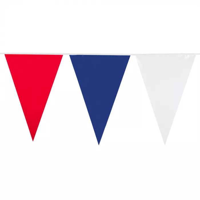 Rozměry: 20 praporků na girlandě 30x20 cm Materiál: 100% PE Barva: trikolóra
