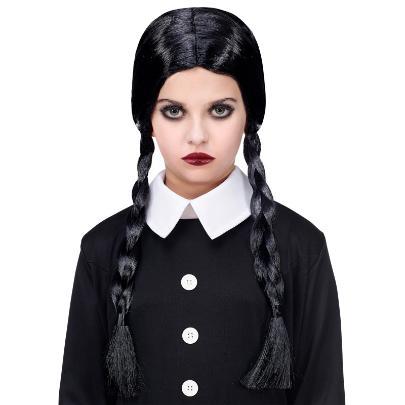 Proměňte svou malou slečnu v ikonickou hrdinku z Addams Family! Dětská paruka Wednesday s typickými černými copánky je perfektní doplněk ke kostýmu na Halloween, karneval nebo tematickou párty.