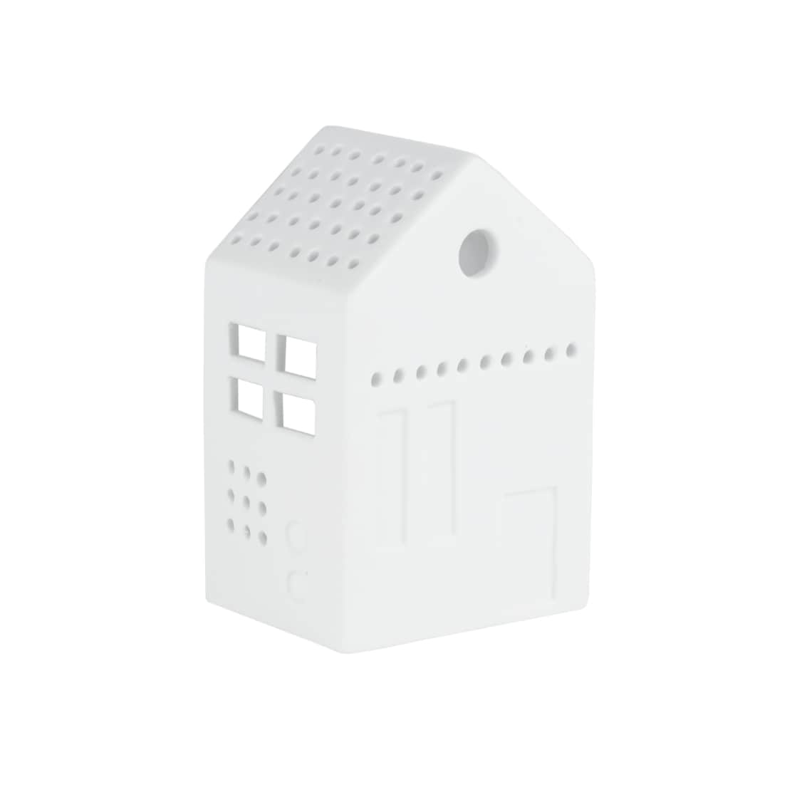 Bílý matný povrch, jemné detaily, prořezávaná okna a drobné perforace ve střeše vytvářejí po zapálení čajové svíčky krásnou hru světla a stínu, která oživí každý koutek vašeho domova.