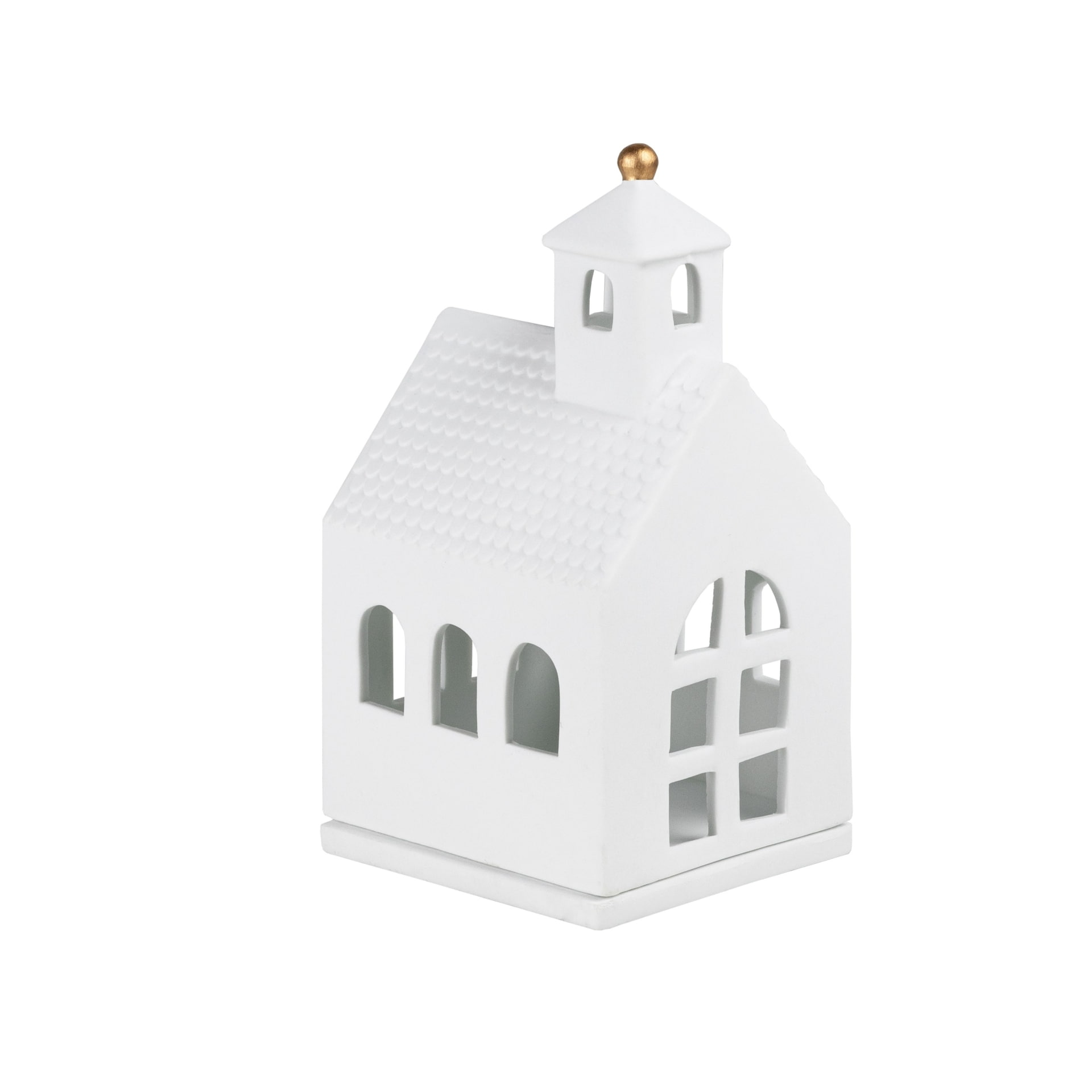 Kaple je vyrobena z jemného matného porcelánu a vyniká precizním zpracováním i jemnými detaily. Skvěle se hodí jako solitérní kousek i jako součást světélkující porcelánové vesničky. Ozdobí váš domov během zimy, Vánoc i po celý rok. výška 14 cm / šířka 8 cm / hloubka 7 cm Vyrobeno z porcelánu.