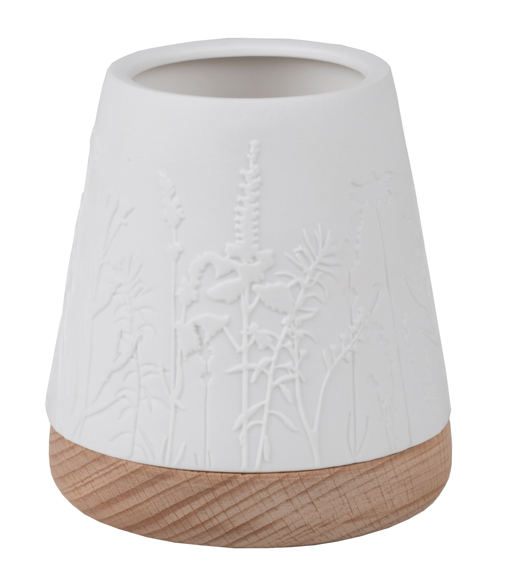 räder Porcelánový svícen Floral Meadow 11 cm, bílá barva, dřevo, porcelán. Bílý porcelánový svícen Floral Meadow německé značky Räder s dřevěným dnem vnese do vašeho domova teplé světlo a útulnou atmosféru. Jemný, vystouplý motiv lučního kvítí působí něžně a v kombinaci s mihotavým plamenem vytváří uklidňující hru světla a stínů.