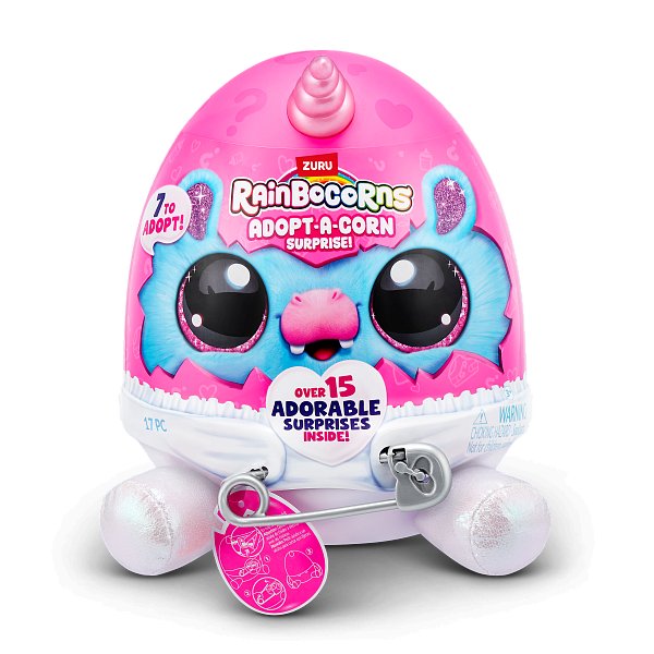 Objevte roztomilé miminko Rainbocorna ukryté v tajemném vajíčku! Adopt-A-Corn přináší okouzlující překvapení plné lásky a péče. Každé vajíčko skrývá více než 15 roztomilých doplňků a překvapení, včetně roztomilé plenky, dudlíku a speciálního srdíčka na hrudi, pod kterým čeká další tajemství. Odpoutejte svého Adopt-A-Corna z jeho plenky, užijte si společná dobrodružství a poté ho zase připněte zpět pro chvíle odpočinku. Sběratelská kolekce obsahuje 7 různých Adopt-A-Cornů – nasbírejte je všechny a získejte oficiální adopční certifikát! Které miminko se ukrývá ve vašem vajíčku? To zjistíte až při rozbalení! Obsah balení: 1 vejce, 1 plyšák, 1 svorka, 1 adopční certifikát, 1 sběratelský průvodce, 10 nálepek, 1 dudlík, 1 cedulka