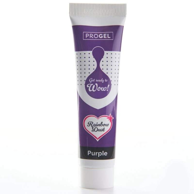 Progel® od anglické firmy Rainbow Dust jsou vysoce koncentrové, tepelně stabilní potravinářská barviva, které jsou v cukrářském světě velmi oblíbené. Jsou vhodné jak na barvení fondánové hmoty, marcipánu či bílkové polevy, tak také na barvení těsta i makronek. Jsou vhodné pro vegany i vegetariány. Složení: zvlhčující prostředek (glycerol E422), barviva E122,133, voda, modifikovaný škrob (tapioka). Upozornění: Barviva E110, E104, E122, E102, E124, E129 mohou nepříznivě ovlivňovat činnost a pozornost dětí. Doporučené dávkování: 3g na 1kg dekorace (max.6g).