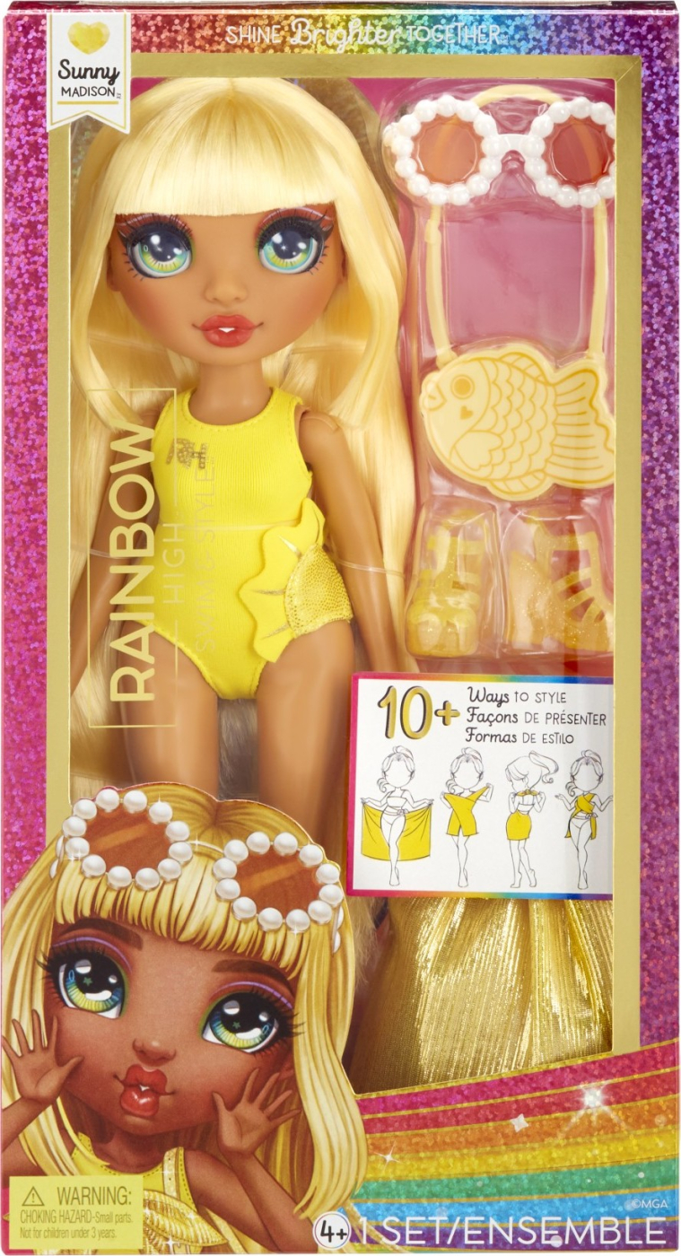 Barvy duhy jsou nekonečné a v létě září nejlépe. 4 oblíbené Fashion panenky se nyní ukáží v plavkách. Panenky mají opět nádherné dlouhé česatelné vlásky a dlouhé řasy. V balení najdeš spoustu doplňků a šátek, se kterým vytvoříš více než 10 looků. Obsah balení: • 1 ze 4 panenek v plavkách • letní doplňky (brýle, kabelka, boty a další) Velikost panenky: cca 28 cm.