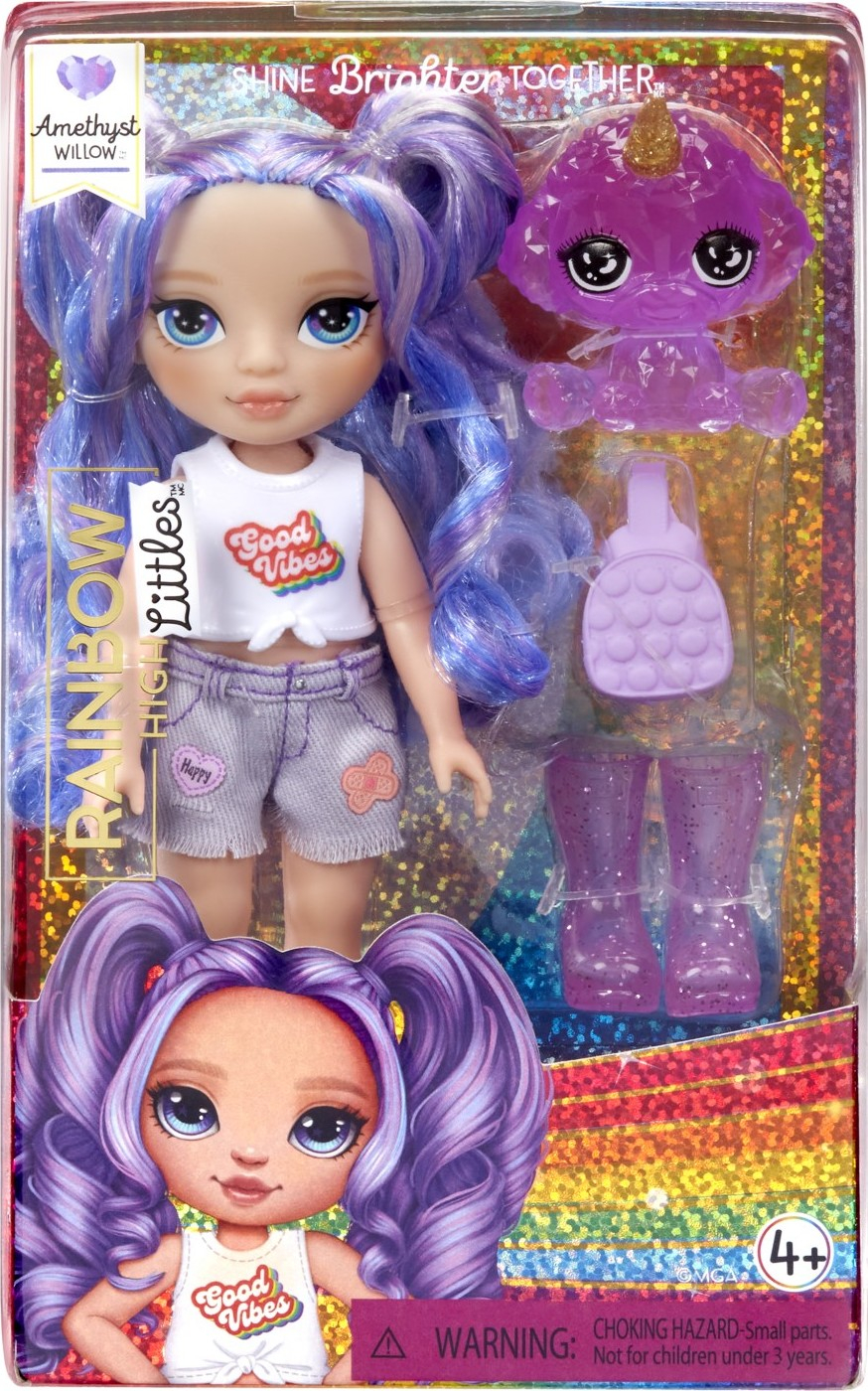 Seznam se s malými sestřičkami oblíbených Rainbow High panenek. Tyto rozkošné malé panenky mají svůj vlastní styl, účes, kabelky a dokonce i mazlíčka. Některé sestřičky jsou podobné velkým Fashion panenkám a některé mají vlastní výraznou osobnost. Obsah balení: • 1 panenka s 5 pohyblivými klouby • 1 outfit podtrhující individualitu panenek • 1 pár bot • 1 kabelka • 1 mazlíček (kočička nebo pejsek)