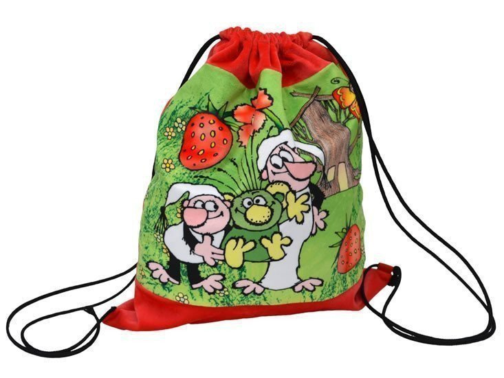 Lehký látkový pytlík s motivem Křemílka, Vochomůrky a Rákosníčka, který šňůrkami stáhnete a můžete ho nosit na zádech jako batůžek. Rozměr 40x33cm. Pratelný.Není hračka
