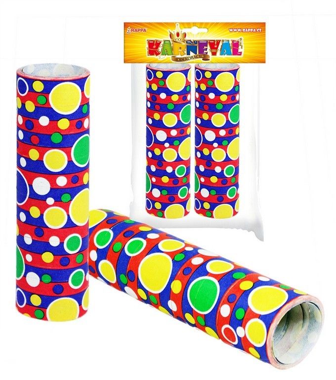 Serpentýny 2 ks barevné Barevné serpentiny s puntíky jsou skvělým doplňkem na tvou párty! Můžeš je házet a vytvářet tak parádní atmosféru při oslavě nebo si jimi jen tak ozdobit cokoli tě napadne. Paráda!