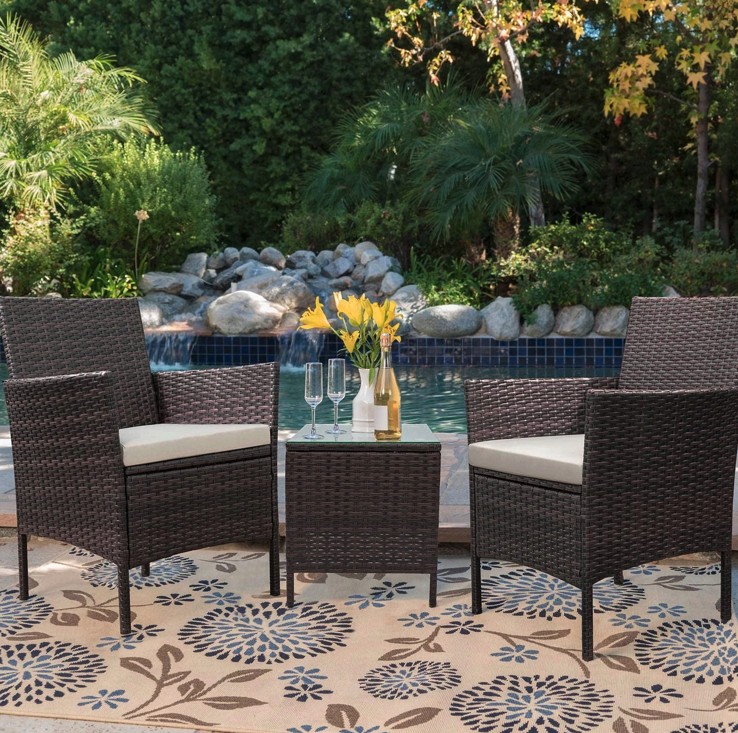 odolná a pevná konstrukceelegantní pletený vzordvě pohodlné křesla s měkkými polštáři a stůl se skleněnou deskou vyrobenou z tvrzeného sklapotah polštářů je na zip, lze ho jednoduše sundat a vypratmaximální zatížení 150 kgsnadné čištěníjednoduchá montáž