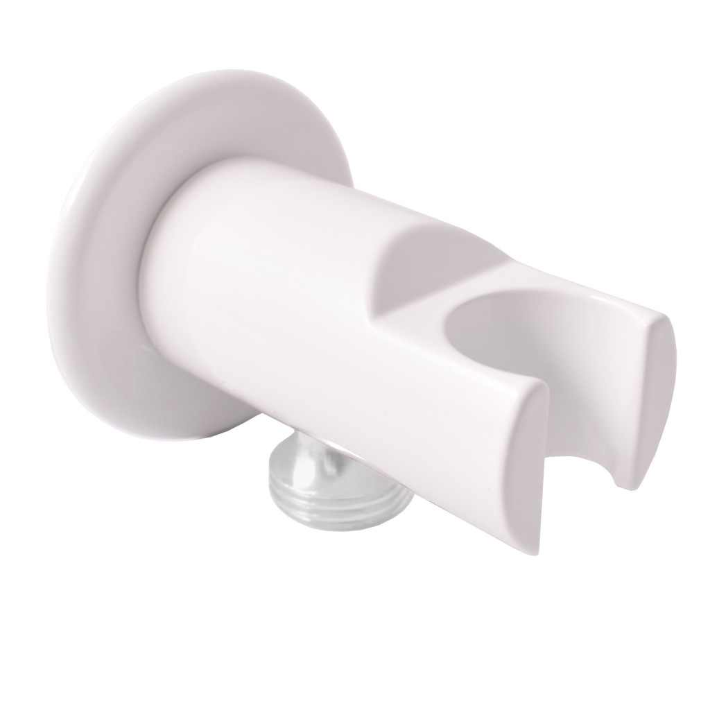 Kovový držák sprchy s vývodem pro hadici. pevný povrchová úprava bílá lesklá Tyto držáky jsou ideální v kombinaci s podomítkovými bateriemi, když nechcete instalovat mezikus na hadici, jelikož hadici napojíte přímo na držák. Vhodný ke všem sprchovým a vanovým podomítkovým bateriím a ke sprchovým růžicím a hadicím Slezák-RAV.