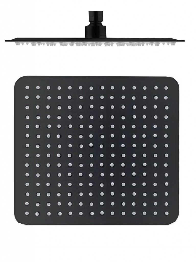 Hlavová sprcha antivápenná. nerezová, 30x30 cm povrchová úprava černá matná 1-polohová sprchu doporučujeme umístit na sprchový držák ze stropu hlavová sprcha má funkci EasyClean – jednoduché čištění drobných trysek sprchy (vznikající vodní kámen lze pouhým jemným dotykem z povrchu trysek jednoduše setřít) váha sprchy je 1,35 kg Záruka: na užitné vlastnosti, funkčnost a povrchovou úpravu - 2 roky