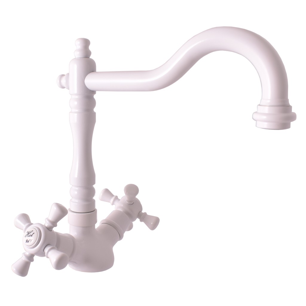 Vodovodní baterie dřezová stojánková s otočným ústím. tato baterie je vybavena keramickými 1/2" vršky od německé firmy Flühs MD0093D provedení bílá lesklá Typ připojení flexi hadic: "0" - připojení flexi hadic 3/8" (např. MK320.0/8B) "5" - připojení flexi hadic 1/2" (např. MK320.5/8B) Tuto baterii lze kombinovat s umyvadlovými, vanovými a sprchovými bateriemi ze série MORAVA RETRO SLEZÁK - RAV. Záruka: na těsnost odlitku (tělo baterie) - 10 let na vršky a povrchovou úpravu - 2 roky na ostatní díly dle Občanského zákoníku Zakázková výroba - termín dodání do 2-4 týdny.