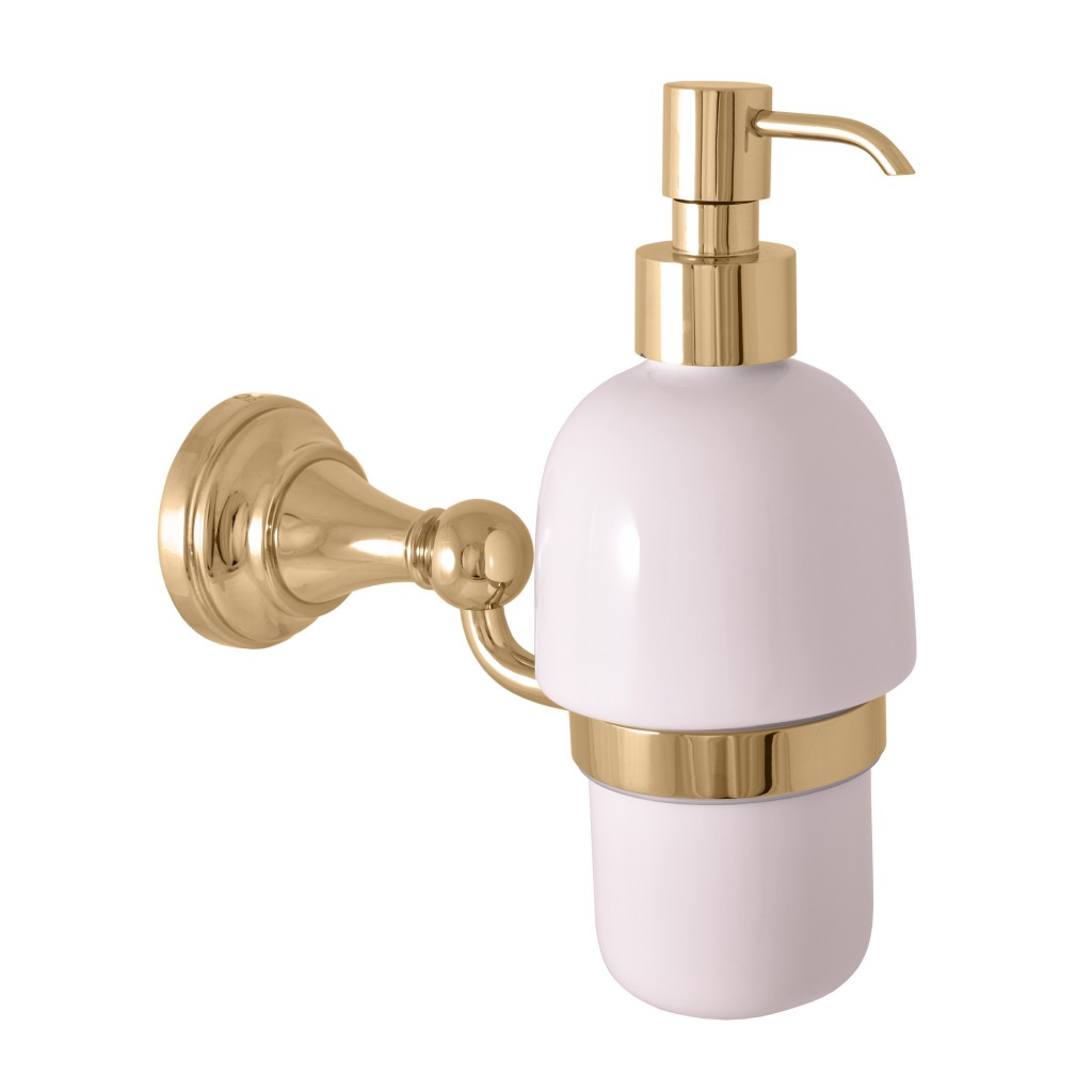 Dávkovač tekutého mýdla s nádechem retra pro maximální hygienu. Díky kvalitním materiálům si dávkovač uchová svůj vzhled po dlouhá léta. objem 3 dl držák dávkovače je vyroben z mosazi s povrchovou úpravou zlato nádoba dávkovače je z keramiky montáž vrtáním nebo lepením Záruka: 15 let na funkčnost (odlitek) 15 let na keramiku 6 let na povrchovou úpravu na pumpičku dle občanského zákoníku